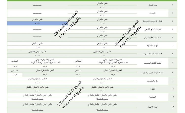 الحدود الدنيا للمعدلات / كلية الرافدين الجامعة