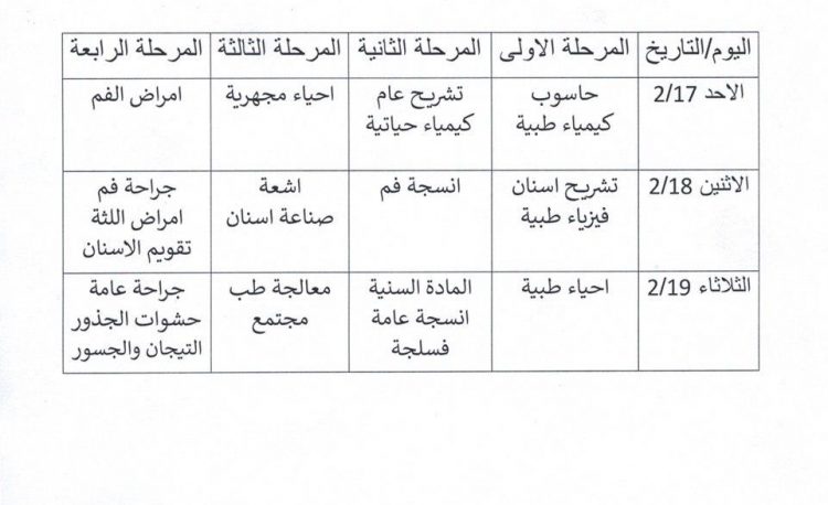 جدول امتحانات نصف السنة (المحملين) لقسم طب الاسنان 3 فبراير، 2019 اسراء اعلام جدول امتحانات(المحملين) لقسم طب الاسنان كلية الرافدين الجامعة ثلاثون عاما من الابداع والتمييز لجنة الاعلام…