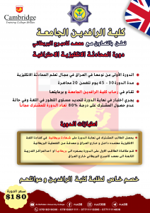 كلية الرافدين الجامعة تعلن بالتعاون مع معهد كامبرج البريطاني اقامة الدورة الاولى في العراق 18 يونيو، 2019 نرمين اعلام ط