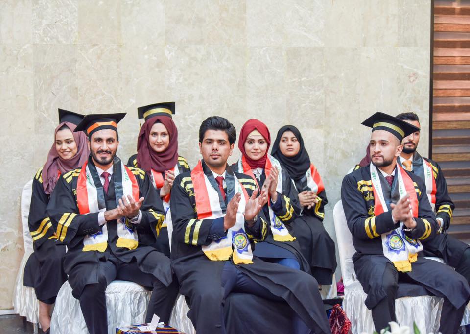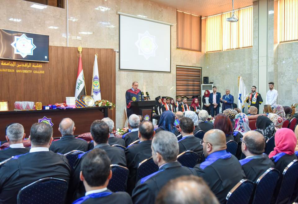 برعاية السيد عميد كلية الرافدين الجامعة الاستاذ الدكتور (محمود جواد ابو الشعير) اقام قسم طب الاسنان في الكلية يوم الاربعاء المصادف 14\11\2018 حفل ترديد القسم الطبي لخريجي الدفعة الخامسة دفعة النصر والتنمية) عن العام الدراسي 2017-2018 وبحضور ممثل عن كل من وزارة التعليم العالي ووزارة الصحة وعدد من السادة عمداء كليات طب الاسنان الحكومية والاهلية وبحضور نقيب اطباء الاسنان في العراق الدكتور فخري الفتلاوي وحضر الحفل السادة اعضاء الهيئة التدريسية ورؤساء الفروع في القسم كما وحضر الحفل اولياء امور الطلبة الاوائل من الخريجين. حيث ابتدأ الحفل بقراءة ايات من الذكر الحكيم تلاها وقفة لقراءة سورة الفاتحة ترحما على ارواح الشهداء اعقبها معزوفة النشيد الوطني بعدها قام كل من السيد العميد والسيد ممثل الوزارة والسيد النقيب بالقاء كلمة احتفاءا بالطلبة الخرجيين تطرقوا من خلالها الى انسانية مهنة طب الاسنان وذكروهم بمسؤليتهم تجاه وطنهم ومجتمعهم واهليهم وكل من سنادهم حتى وصلوا لهذه المرحلة كما اشادوا بدور الفروع العلمية في القسم ومثابرة الهيئة التدريسية في تحديث المناهج وماله من دوركبير للارتقاء بمستوى التعليم في الكلية .كما واكدوا على دور الكليات الاهلية جنبا الى جنب مع الكليات الحكومية برفد المجتمع بطاقات شابة مسلحة بالعلم والاخلاق قادرة على خدمة المجتمع وتطور البلد.