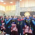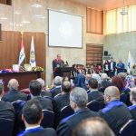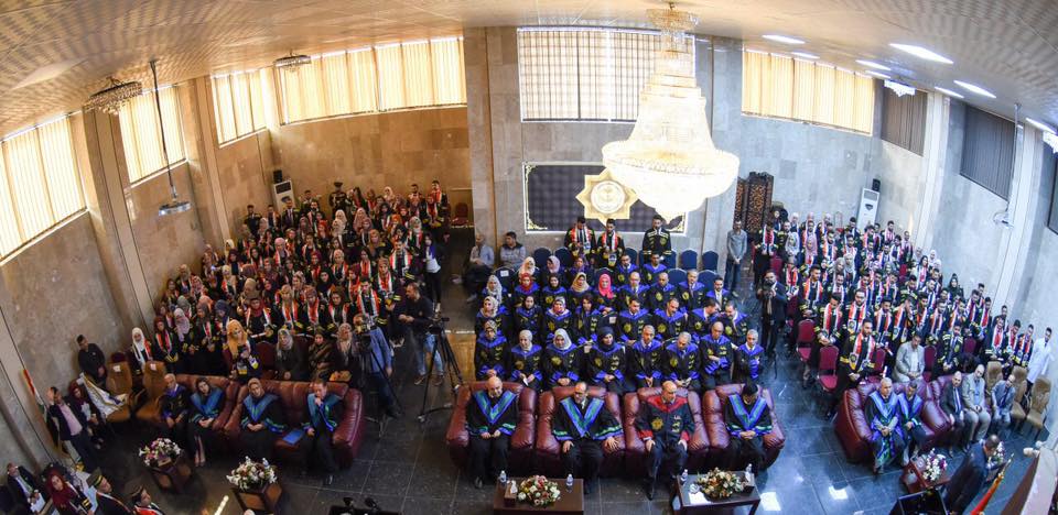 وعن الطلبة المتخرجين القى الطالب الاول على دفعته (ابراهيم فرحات) كلمة نيابة عن زملائه