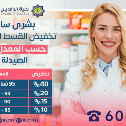 دعم من الاستاذ الدكتور محمود جواد ابو الشعير عميد الكلية المحترم تخفيض الاقساط الدراسية حسب المعدلات ادناه للمرحلة الاولى RUCFACEBOOK-RUC