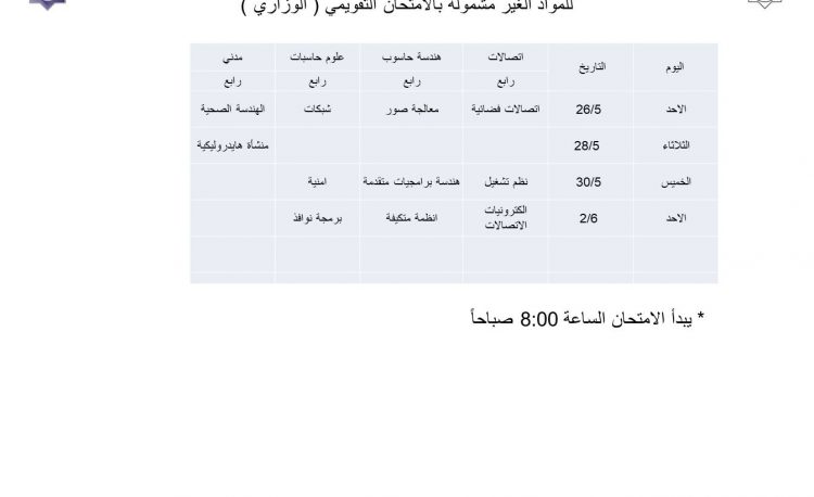 جداول الامتحانات النهائية للمواد المتبقية