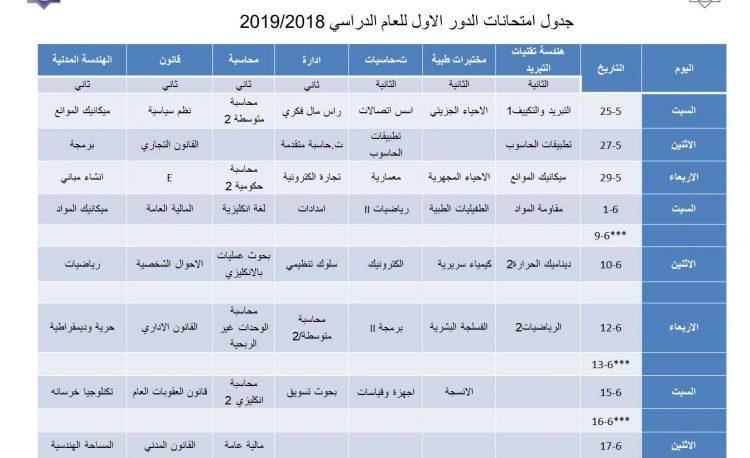 للعام الدراسي ٢٠١٩ - الدور الاول