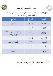 جدول الامتحانات النهائية(لقسم الهندسة المدنية) المرحلة الرابعة الدور الاول للعام الدراسي ٢٠١٩/٢٠١٨
