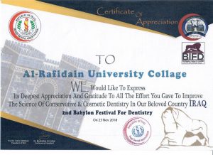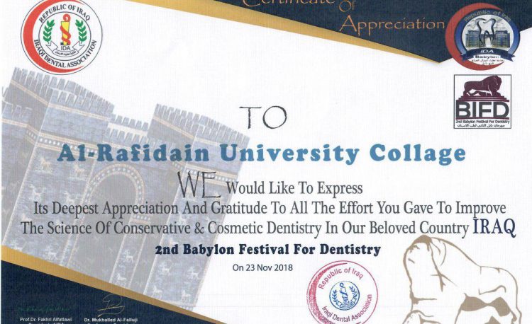 وثيقة تقدير الى كلية الرافدين الجامعة 11 ديسمبر، 2018 مدير الموقع كلية الرافدين الجامعة ثلاثون عاما من التميز لجنة الاعلام…