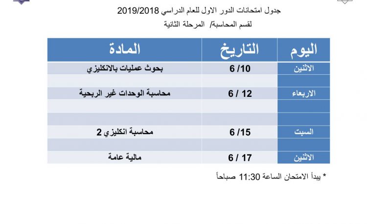تم تعديل جدول امتحانات قسم(المحاسبة) المرحلة الثانية