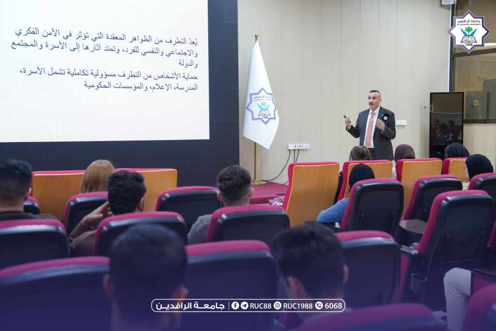 برعاية الأستاذ الدكتور محمود جواد أبو الشعير المحترم، رئيس جامعة الرافدين، أقامت كلية القانون ندوة علمية بمناسبة اليوم العالمي لمكافحة التطرف العنيف، بعنوان: “أهمية حماية الأشخاص بمختلف مستوياتهم وسبل ضمان سلامتهم”، وذلك في رحاب البناية الرئيسية للجامعة ألقى الندوة الأستاذ (م.م. حسام ستار داخل المحترم ) من كلية القانون، حيث تناول في محاضرته الجوانب القانونية والإنسانية المتعلقة بحماية الأفراد، وبيان الأطر التشريعية الكفيلة بضمان سلامتهم، إلى جانب تسليط الضوء على دور المؤسسات التعليمية في نشر ثقافة الاعتدال ونبذ التطرف بكافة أشكاله وتأتي هذه الفعالية ضمن جهود جامعة الرافدين في تعزيز الوعي القانوني والمجتمعي، وترسيخ قيم التسامح وسيادة القانون، بما يسهم في بناء مجتمع آمن ومستقر قائم على احترام الحقوق والحريات.